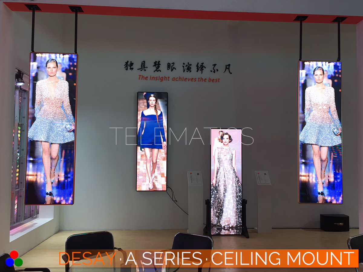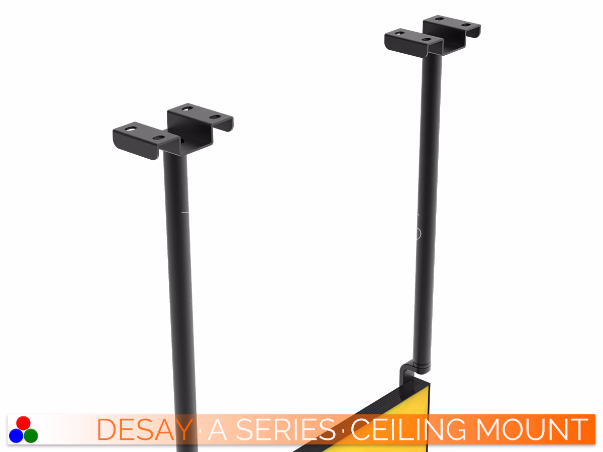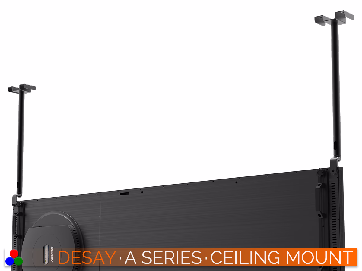 The A Series can be equipped with an adjustable or mobile base for events and exhibitions, or with a ceiling or wall mount, single or double-faced, or linked together.