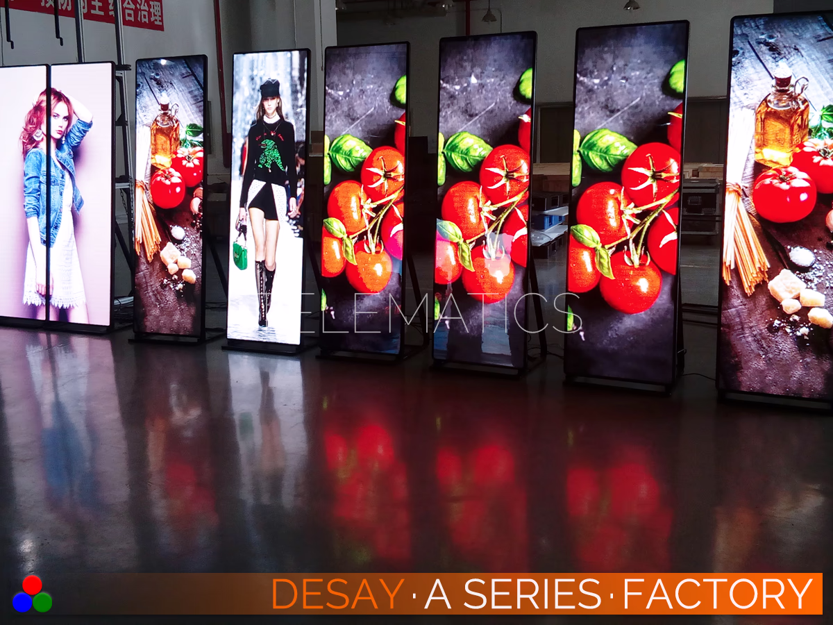 2026 · USD $ 2,581 ⁞ Desay A Series LED Poster · 0.900 to 2.571 ⁞ The Desay A Series is a lightweight, very portable LED poster built for indoor installations, creative displays, trade shows and exhibitions. The value-priced A Series is offered in two (slightly) different sizes based on your selection of COB or SMD modules. Our standalone legacy Desay A Series LED poster can be specified with standard NovaStar T30 or an upgrade to T50 integrated media players,