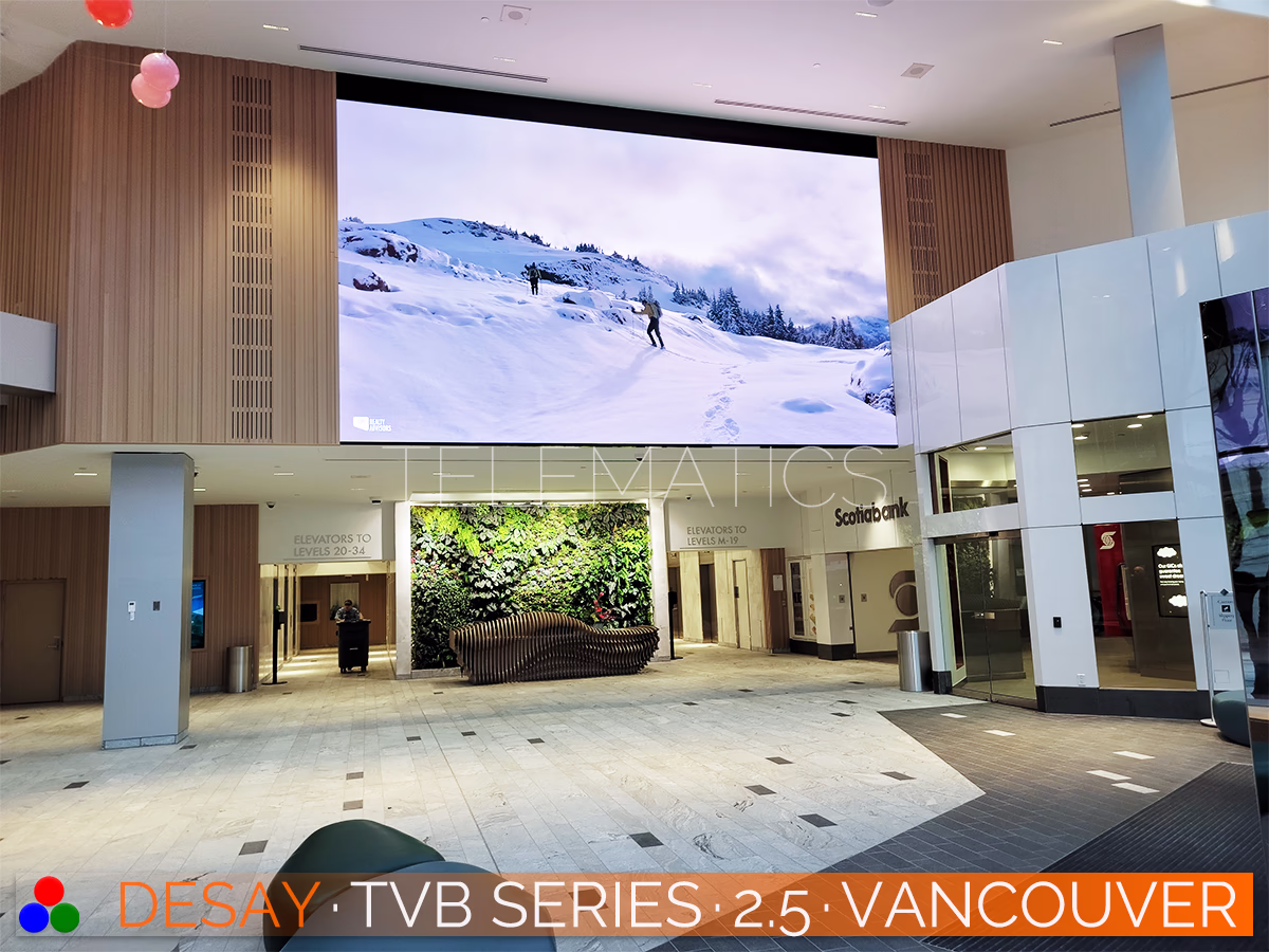 2026 · USD $ 2,238 ⁞ Desay TVB Series LED Panels · 0.781 to 2.500 ⁞ The Desay TVB Series is a premium indoor LED panel designed for high-resolution applications with natural 16:9 aspect ratios. The Desay TVB Series supports concave or convex configurations and our 18mm French Cleat frame for incredibly low-profile installations. Your Desay TVB Series display will be equipped with premium NovaStar A10s Pro cards and MX COEX controllers.
